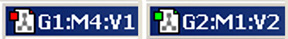左のアイコンは、1番目の分子グループにある4番目の分子の1番目のビューに対応します。右は、2番目の分子グループにある1番目の分子の2番目のビューです。このアイコンの同じ色が、この分子に関連する全てのダイアログに現れます。いくつかのOSでは、色付きアイコンはステータスバー内に置かれます。