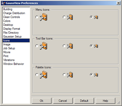 「Icons」環境設定では、様々なGaussViewウィンドウでのアイコンの大きさを指定することが可能です(図9)。