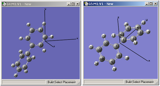 これらのウィンドウは、GaussViewの「Cartesian Axes」表示オプションを示しています。