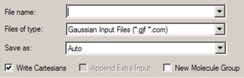 - Write Cartesian Coordinates:チェックすると、分子構造はデカルト座標でファイルに保存されます。デフォルトは、Z-matrix形式です。