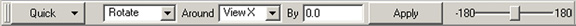 - 二番目のポップアップメニューで「Rotate」を選択すると、隣に「Around」と表示されます。そこでは、分子を回転させる際の軸を指定します。二番目のポップアップメニューで「Translate」を選択した場合には、隣の表示は「Along」となります。