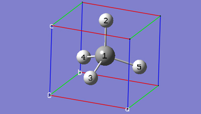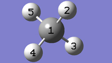 3-3 分子ビューウィンドウの中でクリックし、メタン分子を描画します。