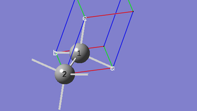 3-20「PBC」ダイアログの「View」タブで、「Cell Replication」の「a」「b」「c」の値をそれぞれ「2」とする事で、2つのセルを各軸に沿って表示させます。